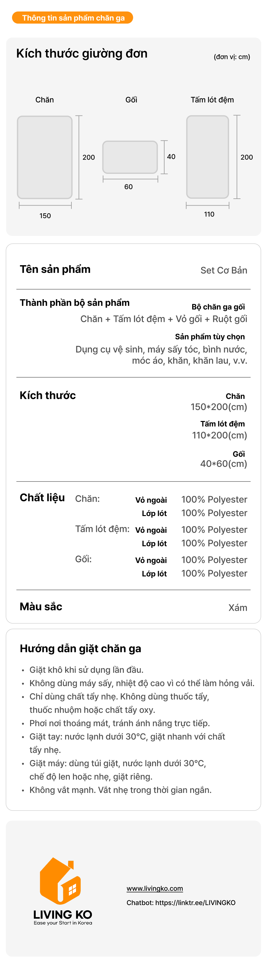 | Bedding Set | Comforter(150x200cm) * Spring~Autumn Pillow(40x60cm) Pillow Cover(40x60cm) |