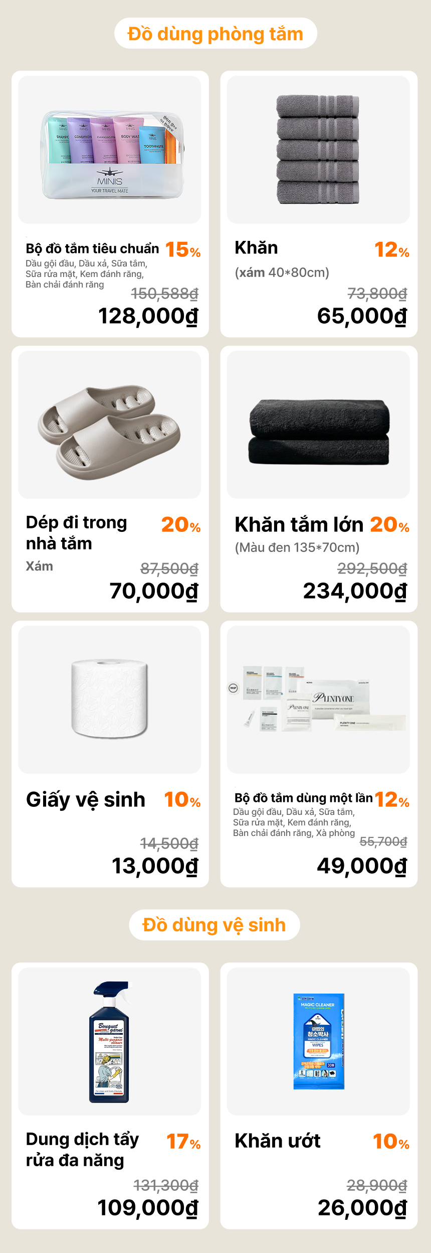 | Bathroom Set | Towel(40x80cm) Disposable Towel(Hand & body) Toilet Paper Soap(small size) |